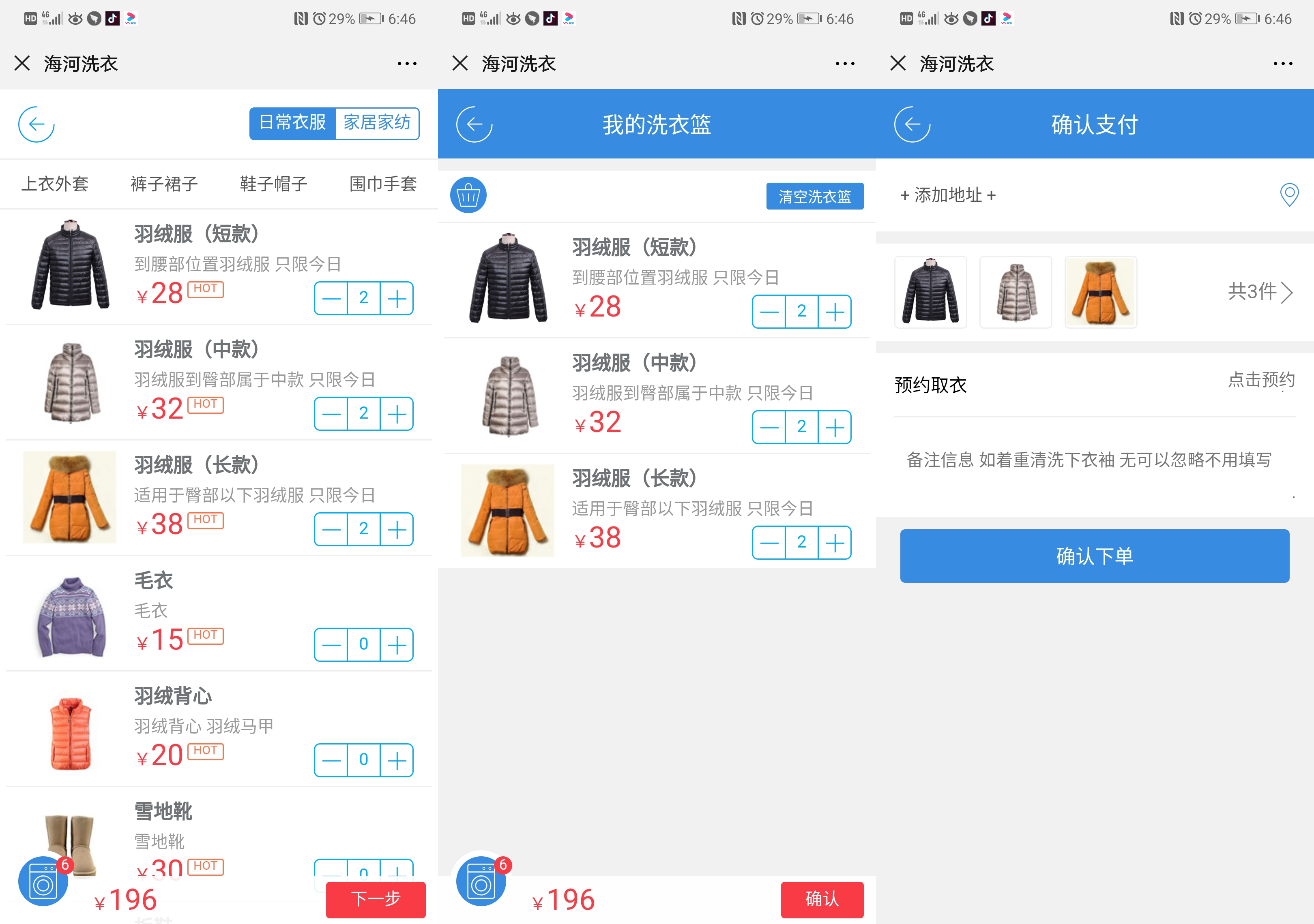 3、常规洗衣服务,经常遇到排队、价格高、时间慢、自送自取等问题。